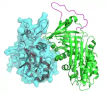 ![]() Figure 1: Recent serpin structures: the structure of the serpin protein Z-dependent inhibitor ( PZI - in green/magenta) in complex with protein Z (cyan/red). Protein Z itself is a catalytically inactive serine protease that functions in this instance as a co-factor. The PZI / Protein Z complex is a highly effective inhibitor of the coagulation protease factor Xa." | |||||||||