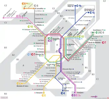 - مشارکتکنندگان ویکیپدیا. «Cercanías Madrid». در دانشنامهٔ ویکیپدیای انگلیسی، بازبینیشده در ۱۲ سپتامبر ۲۰۱۹.