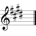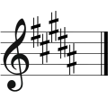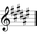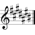| دو دیز ماژور | ۷ | فا دیز، دو دیز، سل دیز، ر دیز، لا دیز، میدیز، سی دیز | لا دیز مینور | ر بمل ماژور / سی بمل مینور |