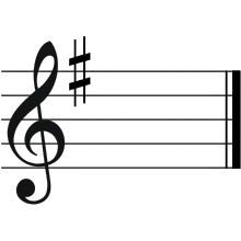 تغییر سرکلید از گامی (با سه بمل) به گامی دیگر (با چهار دیز). |
