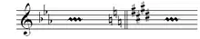 ![]() سرکلید در گام لا دیز مینور با هفت دیز (♯) و تغییر در سرکلید به گام لا مینور با هفت علامت بکار (♮). |