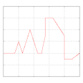 نمونه ای از همگرایی به یک تابع نسبتاً دلخواه. به شکلگیری "طنین" (پدیده گیبس) در انتقال به بخشهای عمودی توجه کنید.