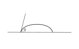 نگارهٔ ۱: قطره بر روی سطح و شمای زاویه تماس