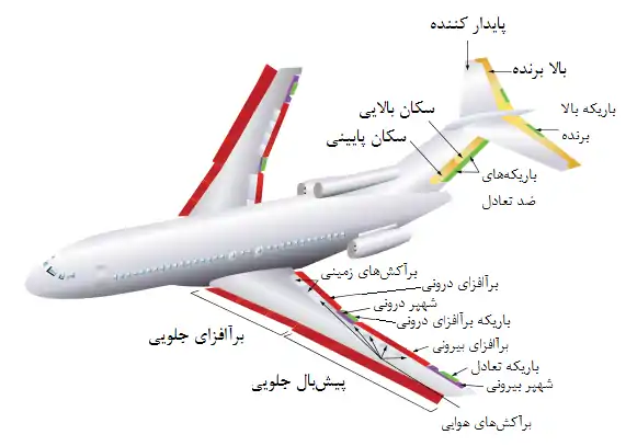 سطوح کنترل پرواز به دو بخش اصلی و ثانوی تقسیم میشوند.
