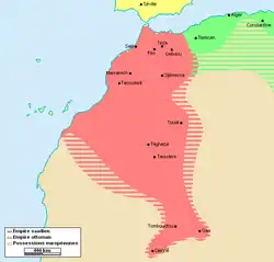 شرفای سعدی از پایگاهی در ناحیه سوس واقع در جنوب مراکش، به تدریج چیرگی خود را بر نواحی شمالی گستردند و وطاسیان را در سال ۹۵۶ق (۱۵۴۹م) از فاس بیرون کردند. آنان ترکان را از الجزایر و پرتغالیان را از سرزمینهای ساحلی بیرون کرده و احمد المنصور، تیمبوکتو را تصرف و مملکت آفریقایی گائو (واقع بر رود نیجر، در مالی) را منقرض ساخت و بنابراین اقتدار او برای مدتی از سنگال تا بورنو امتداد داشت.[2]