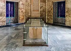در ضلع شمال غربی ایوان (نزدیک آرامگاه شوریده شیرازی) دوازده بیت از قصیدهای با مطلع زیر به چشم میخورد: