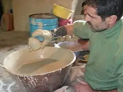 - گلمال - گلمال در قسمتی از کارگاه موسوم به «ترپاق دان» کار میکند و کار او ورز دادن گل خام است.