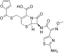 (6R,7R)-7-[ [(2Z)-2-(2-Amino-1,3-thiazol-4-yl)- 2-methoxyiminoacetyl]amino]-3-(furan-2- carbonylsulfanylmethyl)-8-oxo-5-thia-1- azabicyclo[4.2.0]oct-2-ene-2-carboxylic acid | |