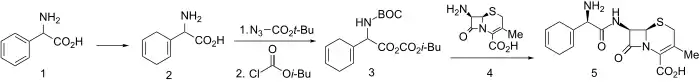 - Dolfini JE, Applegate HE, Bach G, Basch H, Bernstein J, Schwartz J, Weisenborn FL (February 1971). "A new class of semisynthetic penicillins and cephalosporins derived from D-2-(1,4-cyclohexadienyl)glycine". Journal of Medicinal Chemistry. 14 (2): 117–9. doi:10.1021/jm00284a008. PMID 5544394.
