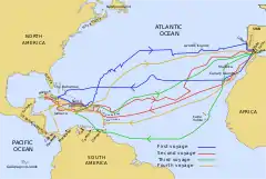 ![]() نقشهٔ ۴ سفر اکتشافی کریستف کلمب | |