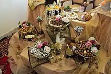 سفره عقد یکی از سفرههای سنتی ایرانی است که در مراسم عقد یا هنگام عروسی پهن میشود و عروس و داماد بر سر آن مینشینند و به خطبه عقد گوش فرا میدهند. سفره عقد در اکثر شهرهای ایران رواج دارد و در آن شش ظرف که هرکدام محتوی چیزی است که بیانگر آرزویی برای عروس داماد است، قرار دارد این ظروف معمولاً شامل: گردو، بادام، فندق، نان و نبات و تخم مرغ میباشند. در میان اینها ظرفهایی از شیرینی و نان پنیر و سبزی، جامهایی از عسل و ماست که کنایهای از شیرینی و ترشی در کنار هم در زندگی مشترک میباشند قرار دارد. تخم مرغ نمادی است برای باروری و زایش اولاد توسط عروس ونان نمادی برای برکت ورزق و روزی است. نبات برای شیرین کامی و…