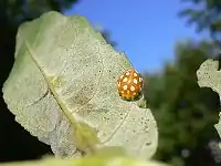 سفیدک گَردمانند که بر روی برگ پدید آمده. کفشدوزکها از سفیدک تغذیه میکنند.