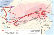 | بخشی از چیرگیهای مغولان بر سلطنت خوارزمشاهیان | |||||||||