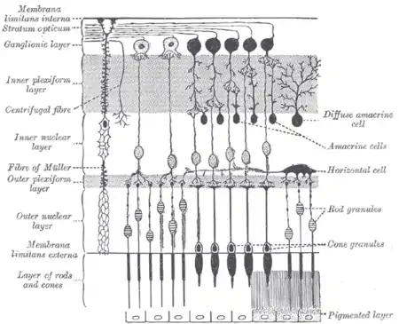 - مشارکتکنندگان ویکیپدیا. «Amacrine cell». در دانشنامهٔ ویکیپدیای انگلیسی، بازبینیشده در ۹ مارس ۲۰۱۵.