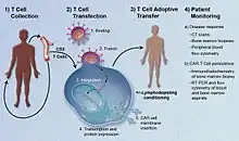 (۲) در آزمایشگاه، ژن سازندهٔ گیرندههای آنتیژن خاصی را به لنفوسیتهای تی مذکور القا میکنند.