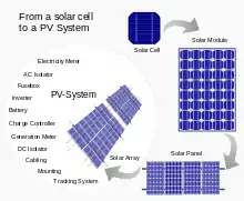 - مشارکتکنندگان ویکیپدیا. «Solar cell». در دانشنامهٔ ویکیپدیای انگلیسی، بازبینیشده در ۱۵ نوامبر ۲۰۱۴.