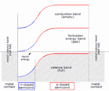 با اتصال یک نیمه هادی نوع p به یک نیمه هادی نوع n، الکترونها از ناحیه n به ناحیه p و حفرهها از ناحیه p به ناحیه n منتقل میشوند. با انتقال هر الکترون به ناحیه p، یک یون مثبت در ناحیه n و با انتقال هر حفره به ناحیه n، یک یون منفی در ناحیه p باقی میماند. یونهای مثبت و منفی میدان الکتریکی داخلی ایجاد میکنند که جهت آن از ناحیه n به ناحیه p است. این میدان با انتقال بیشتر باربرها (الکترونها و حفرهها)، قویتر و قویتر شده تا جایی که انتقال خالص باربرها به صفر میرسد. در این شرایط ترازهای فرمی دو ناحیه با یکدیگر هم سطح شدهاند و یک میدان الکتریکی داخلی نیز شکل گرفتهاست.