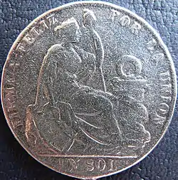 ![]() ۱ sol coin with the motto: "Firme y feliz por la unión" ("Steady and happy for the union"). | |