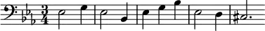 - ۳ هورن (اولی در «می بِمُل»، «دو»، «فا»، و دومی در «می بِمُل»، «دو» و سومی در «می بِمُل»)، ۲ ترومپت در «می بِمُل» و «دو»