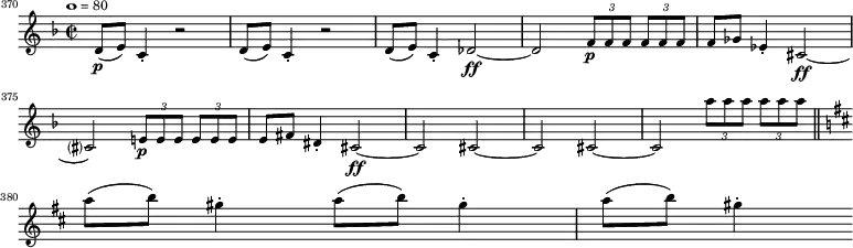 | سمفونی شماره ۸ بتهوون، فینال، میزان ۳۷۰ تا ۳۸۱ |