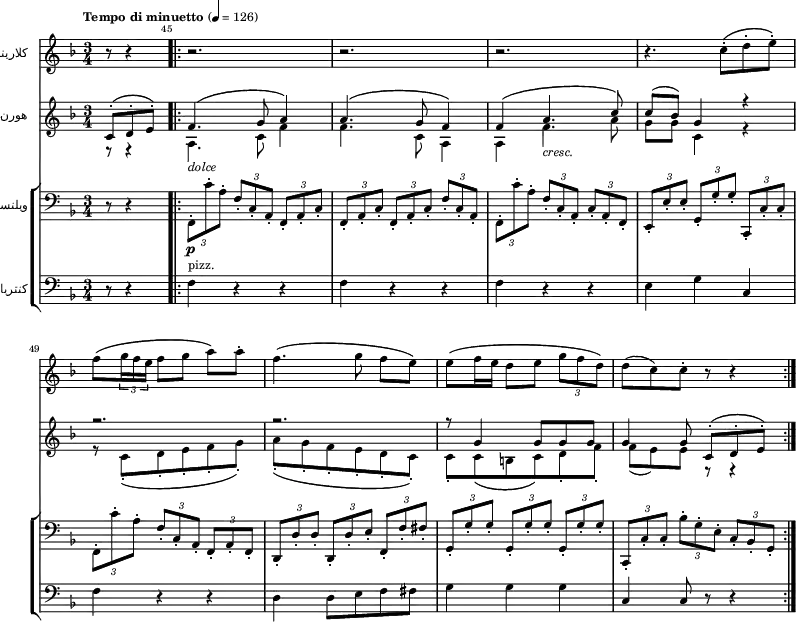 | سمفونی شماره ۸، موومان سوم (تریو)، میزانهای ۴۵ تا ۵۲ |