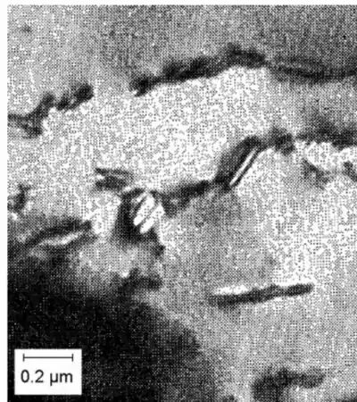 این واقعیت که فریت می تواند از سمنتیتی که در درجه حرارتهای بالا به تعادل رسیده رسوب کند ، ثابت می کند که در درجه حرارت کم میزان کربن درون سمنتیت افزایش می یابد.[4]