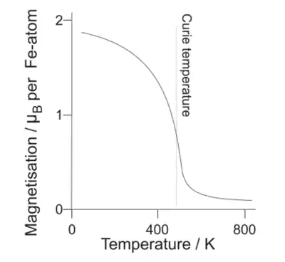 رفتار سمنتیت در دمای کیوری خود یعنی 480 درجه کلوین از فرومغناطیس به پارامغناطیس تبدیل می شود. رفتار مغناطیسی سمنتیت بر حسب دما در نمودار زیز نشان داده شده است.[7]