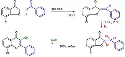 - K. Auwers, K. Müller, "Umwandlung von Benzal-cumaranonen in Flavonole", Chemische Berichte, 41, 4233–4241 (1908) (doi:10.1002/cber.190804103137).
