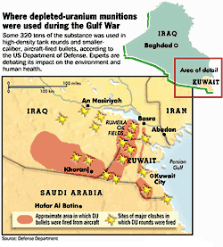 اورانیوم ضعیف شده برای اولین بار در جنگ خلیج فارس استفاده شد و گفته شده یکی از علل سندرم جنگ خلیج فارس است.