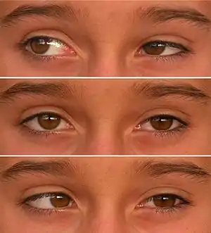 | سندرم دوئین نوع ۱ در چشم چپ یک دختر ۱۰ ساله. | |