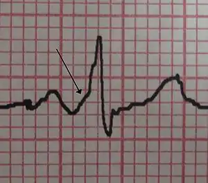 | یک مشخصهٔ موج دلتا در نوار قلب یک بیمار مبتلا به سندرم ولف پارکینسون وایت | |