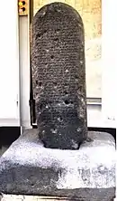 سمت آشوری این سنگ در اثر تیراندازیهای مکرر افراد ناآگاه به شدت آسیب دیده است ولی خطوط آن هنوز خواناست. در قسمت پشت کتیبه که به زبان اورارتویی است ساییدگی بر روی سنگ دیده میشود.[3]