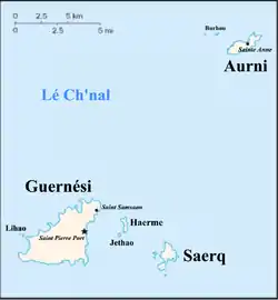 - مشارکتکنندگان ویکیپدیا. «Guernsey». در دانشنامهٔ ویکیپدیای انگلیسی، بازبینیشده در ۲۱ اوت Guernsey.