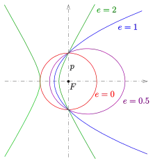 اگر مبدأ را به سمت کانون جابه جا کنیم یعنی معادله ی قطبی زیر را خواهیم داشت: