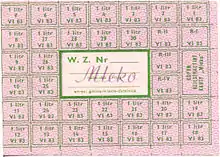 سهمیه بندی در جنگ جهانی دوم رایج شد. کوپن سهمیه برای این مورد رواج یافت که به هر خانواده تخصیص مییافت. در دهه ۱۹۴۰ به دلیل کمبود آذوقه، سهمیه بندی در کشورهای جنگزده رایج بود.[4]