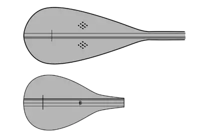 درازای دسته ۴۰ تا ۴۸ سانتیمتر و قسمتی که گوشیها در آن تعبیه میشوند ۱۲ سانتیمتر و پهنای دسته ۳ سانتیمتر است. بعضی از سازندگان برای زیباتر شدن و همچنین برای افزایش عمر مفید ساز، از نوعی استخوان که معمولاً استخوان شتر است برای پوشاندن دسته استفاده میکنند.