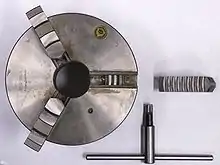 .[2] در تراشکاری از سهنظام برای بستن قطعات گرد یا چندضلعی بر روی ماشین تراش استفاده میشود. وسایل بستن قطعهٔ کار بر روی ماشین تراش عبارتاند از: سهنظام، چهارنظام، صفحه نظام، فشنگی، مرغک، دُرن، نوکگیر و لینت.[3]