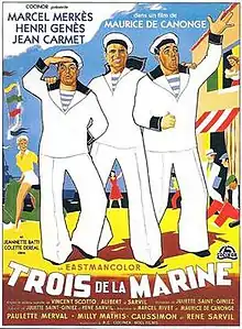 سه ملوان (انگلیسی: Three Sailors) یک فیلم در ژانر موزیکال به کارگردانی موریس دو کنونژ است که در سال ۱۹۵۷ منتشر شد. از بازیگران آن میتوان به ژان کارمه و ژان مورا اشاره کرد.