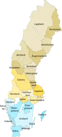 کشور سوئد به ۲۵ سرزمین (به سوئدی: Landskap) تقسیم میشود.