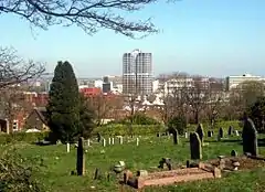 ![]() Swindon town centre from Radnor Street Cemetery | |