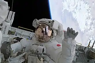 سوئیچی ناگوچی در حال پیادهروی فضایی در ماموریت استیاس-۱۱۴