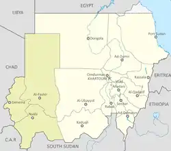 در منطقه دارفور درگیریهای خشن میان گروههای قومیتی، بر سر مالکیت زمین، امری رایج بود. در پایان دهه ۱۹۸۰ یک جنبش برتریجویانه عرب پا گرفت که گفته میشد مورد پشتیبانی معمر قذافی بود. گروههایی مانند «فور» ها، «زغاوه» ها و «ماسالیت» ها احساس میکردند که دولت، جانب عربها را گرفتهاست. آغاز جنگ دارفور را معمولاً سال ۲۰۰۳ میدانند. با این حال جنبشهای شورشی، پیش از آن شکل گرفته بودند.[32] مقامات سازمان ملل متحد در مارس ۲۰۰۴ گفتند که شبه نظامیان جنجوید هوادار دولت به قتل عام سازماندهی شده روستاییان غیر عرب در دارفور دست زدهاند. «سند دوحه برای صلح در دارفور» در مه ۲۰۱۱ در قطر امضا شد. اما در سپتامبر ۲۰۱۲ درگیری با شورشیان در دارفور و کردفان جنوبی رخ داد.[33] سازمان ملل متحد تعداد کشتهشدگان جنگ دارفور را سیصد هزار تن و تعداد آوارگان آن را دو و نیم میلیون نفر تخمین زدهاست.[34]