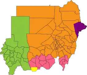کشور سودان به ۱۵ استان بخش شدهاست که به آنها ولایت میگویند، نام این استانها و مراکز آنها در فهرست زیر آمدهاست: