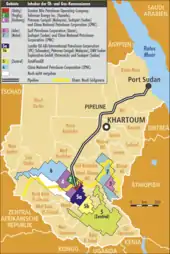 در سال ۱۹۹۳ رئیسجمهور آمریکا، بیل کلینتون، سودان را در لیست کشورهای حامی تروریسم قرار داد و سه سال بعد یک رشته اقدامات از جمله منع (انتقال فناوری، فروش قطعات یدکی و به ویژه - و از همه دشوارتر- تحریم معاملات بانکی بینالمللی به دلار) را به تصویب کنگره رساند؛ امری که صدمه سنگینی به اقتصاد سودان وارد کرد. با این همه خارطوم توانست به دلیل رونق قیمت نفت و سرمایهگذاری چین از سال ۱۹۹۹ در این زمینه، کمابیش به اموراتش ادامه دهد. مشارکت پکن، اکتشافات را توسعه داده و به خصوص با ساخت لولههای نفت که منطقهٔ میدان های نفتی در بندر سودان را به هم مرتبط میکرد، طی پانزده سال، توانست سرمایهگذاری گستردهای در سودان بکند (بیش از ۱۴ میلیارد دلار- ۸٬۱۱ میلیارد یورو) این کشور تا سال ۲۰۱۰ روی طلای سیاه زندگی میکرد تا زمانی که جنوب سودان، منطقهای که ۹۰٪ ذخایر نفتی در آن قرار گرفته، پس از برگزاری یک همهپرسی بینالمللی از سودان جدا شد.[36]