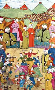 - ۱۵۲۴ اولین جشن شناخته شدهای که برای آن سورنامهای وجود داشت، مراسم ازدواج شاهزاده خدیجه، خواهر سلطان سلیمان اول، با وزیر اعظم ابراهیم پاشای پارگایی بود. این سورنامه به سفارش سلطان سلیمان به منظور ثبت وقایع انجام شد.[2]