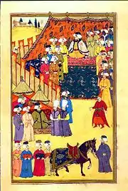 - ۱۷۲۰سورنامهٔ همایون سال ۱۷۲۰ توسط سلطان احمد سوم برای ختنهسوران چهار فرزندش برگزار شد، این جشن پانزده روز طول کشید. این جشن توسط وهبی ثبت شد که متن را برای این کتاب نیز ارائه دادهاست. تصاویر توسط عبدالجلیل لونی و دستیارانش ساخته شدهاست. این آخرین جشنی بود که در سورنامهای ثبت شده بود و این نیز آخرین نوع خود از لحاظ عظمت بود. وهبی همچنین در سورنامه میگوید که او برای ساختن این کتاب، با پیروزی در یک رقابت انتخاب شده بود.[2]