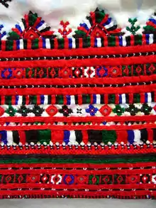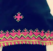 - پانچک Pachac : همان پارچه شلوار است که سوزن دوزی میگردد. در قسمت سر شلوار استفاده میشود و همانند سر آستین میباشد. اما با این تفاوت که نقشها در سر آستین بیشتر از پاچک میباشد.