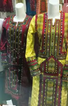 قطعات مورد استفاده در لباسهای زنان بلوچ عبارتند از: