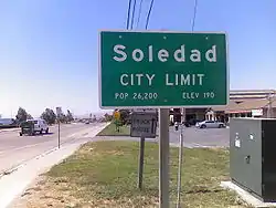 ![]() City limit sign seen as entering into Soledad | |