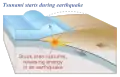 سونامیها معمولاً پس از یک زمینلرزهٔ بزرگ (با حرکت رو به بالا)، فعالیت آتشفشانی زمینلغزه یا برخورد شهابسنگها پدید میآیند.